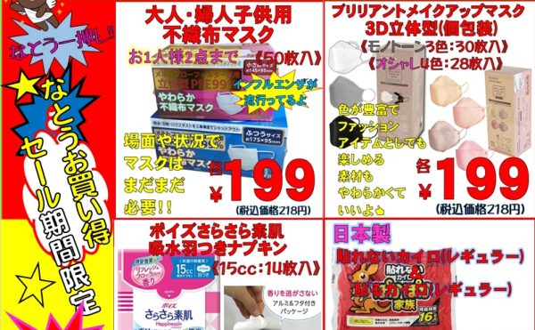 2025年11月4日お買い得情報Suhara 2025年三匹のこぶた開催 期間11月6日(木)~9日(日)こんにちは✨ワクワクする商品がいっぱいあるお店ファミリーショップなとうです🎉 ⭐みなさん朗報です⭐またまた『三匹のこぶたさん🐷🐷🐷』がやってきました❗ 店内には三匹のこぶたさん達が力を合わせて仕入れをしてきたお宝商品がた […]
