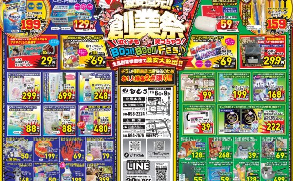 2025年11月8日お買い得情報Natou 三匹のこぶたがお届けする激安還元‼創業祭第2弾開催:11月8日(土)~9日(日) 秋のさんびきのこぶた大売り出し残すところあと2日超お値打ち品を更に追加投入致しましてお客様のご来店心よりお待ちしております