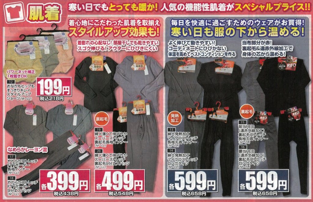 今回のチラシには寒暖差対策できそうな商品が