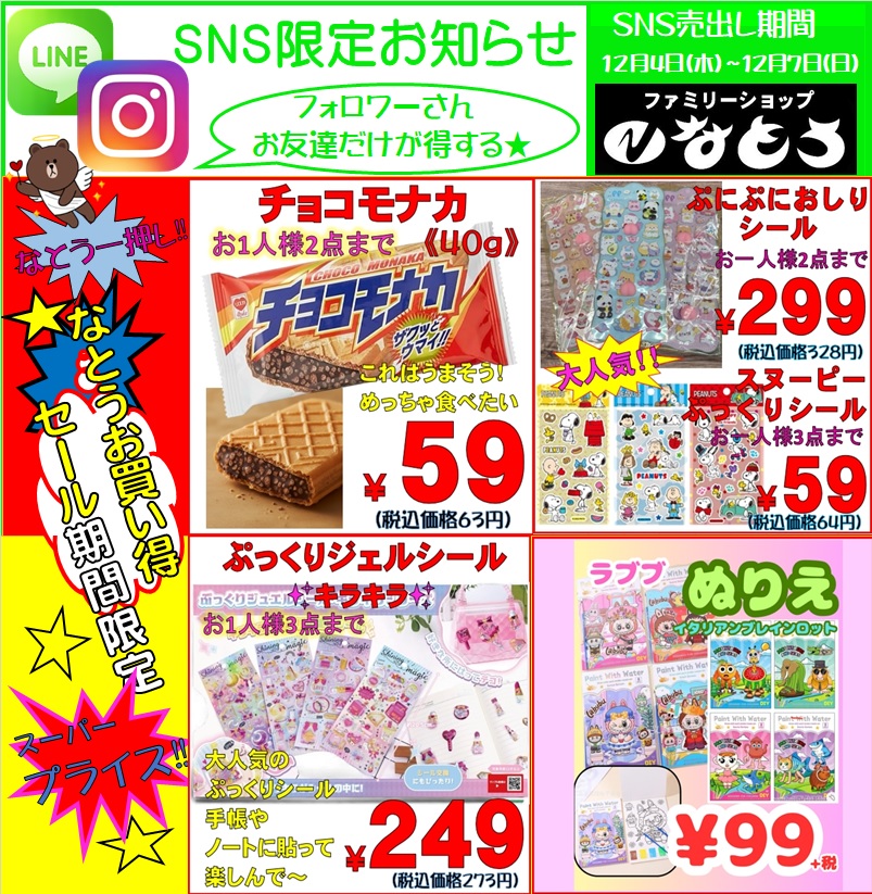 いよいよ年末が近づいてきたよ!SNS売出し期間12月4日(木)~7日(日)