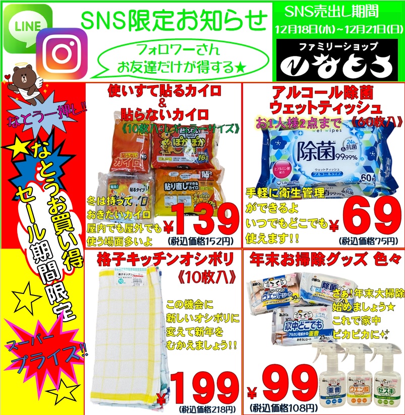 LINEチラシも頑張ってます!!SNSチラシ開催期間12月18日(木)~21日(日)