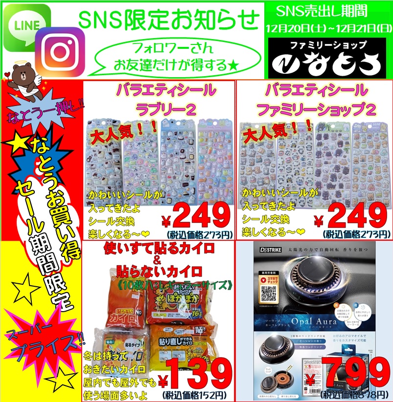 なとうおじさん:突然のSNS売り出し作成ありがとう!週末は子供さんも選ぶことができるので、どうしてもお知らせしたくて・・・
